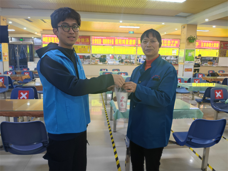 3月8日早上,智能工程学院的志愿者们在餐厅门前集合,本着“奉献、友爱、互助、进步”的志愿服务精神,在餐厅和宿舍举行了“爱心早餐”志愿活动。