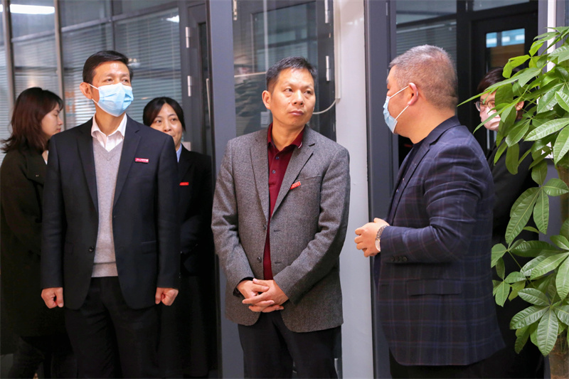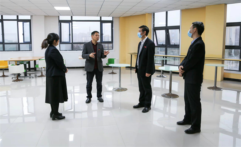 王能民校长一行先后参观了beat365教育部科学工作能力提升计划实训示范基地(百千万工程)和大学科技园,听取了实训基地及大学科技园的基本情况介绍,实地走访了大学科技园服务大厅、众创空间、路演大厅、孵化器等场地,与花曼轩、校园令、景佑、河南仙鸟、中原华尔等入驻企业负责人进行了深入交流。
