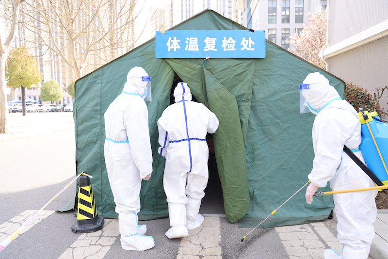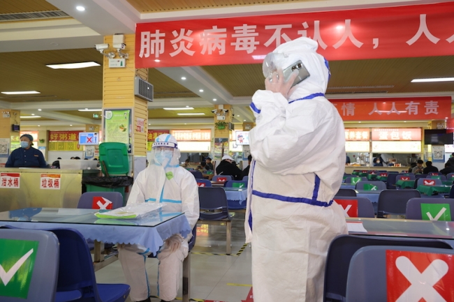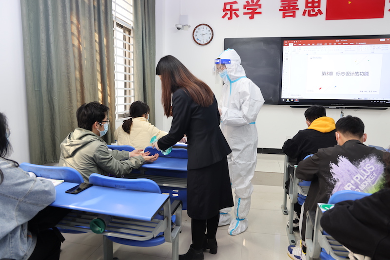 此次演练共包括学生餐厅、3号学生宿舍楼、德信办公楼、图书馆和2号教学楼等重点部位和场所的应急演练。演练场所分别对学生、教职工模拟发热或作为确诊病例次密接者两种情况进行了实战演练。演练前,各场所疫情防控工作人员周密部署,细化流程,认真制定演练脚本,确保各个环节衔接有序。演练现场,根据学生或教职工模拟情况,学校立即启动疫情防控应急预案。学校疫情防控工作领导小组、疫情防控工作专班、校医务室等多部门有效联动,密切配合,严格按照校园疫情防控应急措施,在较短时间内高效完成了对紧急情况的应对和处置。演练过程中,学校师生积极配合,整个演练流程顺畅有序。