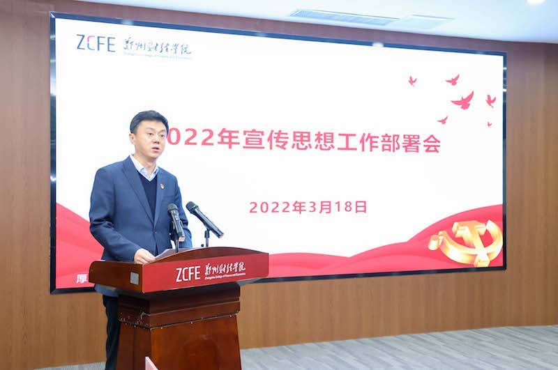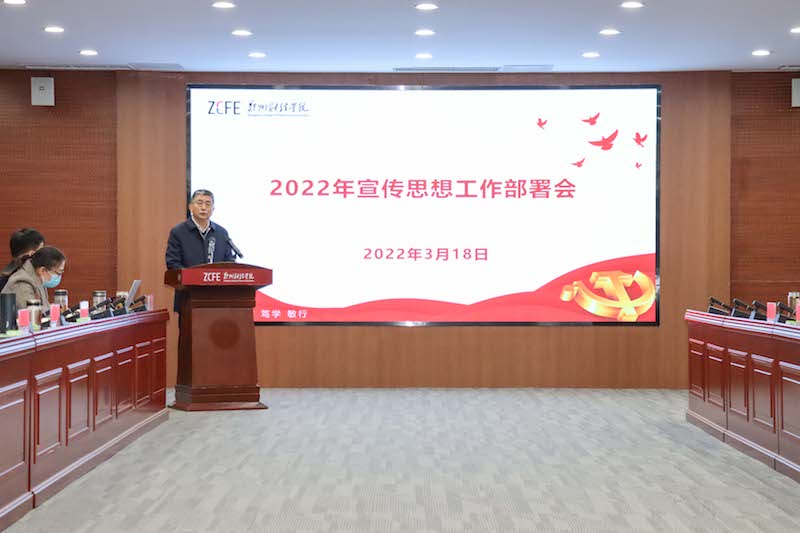 会上,党委副书记董学力首先传达了省委教育工委、郑州市委宣传思想工作会议精神,并结合省市会议精神,对学校2022年宣传思想工作作部署。