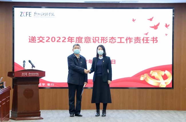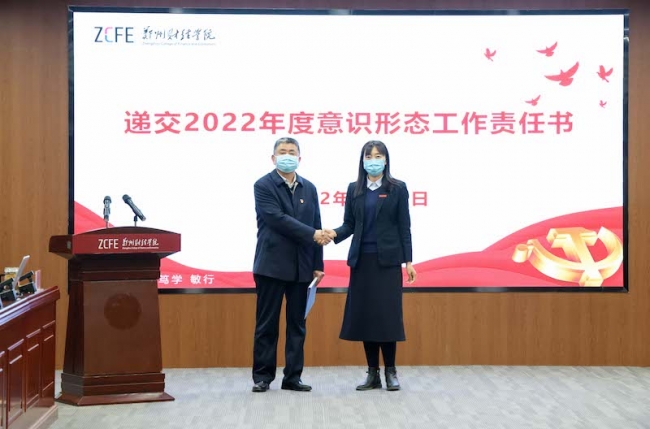 随后,学校职能部门、二级学院负责人代表分别向党委书记李国强递交了《2022年度意识形态工作责任书》。