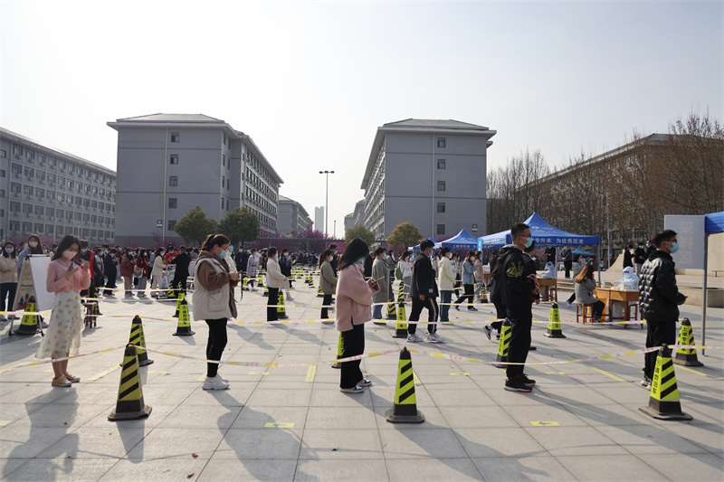 为贯彻落实全省教育系统疫情防控视频会会议精神,全面筑牢校园疫情防控安全屏障,3月23日下午,beat365组织开展核酸检测抽检工作,抽检比例为班级人数的20%,抽检学生涵盖所在班级的每个宿舍。本次抽检在文化广场进行,学校共设置八组通道分检,各有关部门密切配合,高效、有序完成了此次抽检学生核酸检测工作。