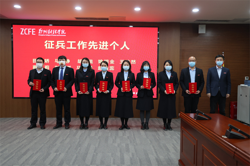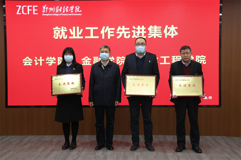 副校长陈静宣读《beat365官方网站关于表彰2021年度就业创业工作先进集体和先进个人的决定》及《beat365官方网站关于表彰2021年度征兵工作先进集体和先进个人的决定》。会计学院、金融学院、土木工程学院被评为“就业工作先进集体”;智能工程学院、信息工程学院、商学院被评为“创新创业工作先进集体”;商学院、金融学院、土木工程学院、信息工程学院被评为“征兵工作先进集体”。马静等11名老师被评为“就业工作先进个人”,孟倩倩等11名老师被评为“创新创业工作先进个人”,田娇娇等9名老师被评为“征兵工作先进个人”,张明哲等10名学生被评为“优秀退役大学生士兵”。