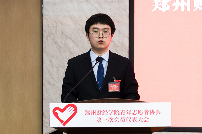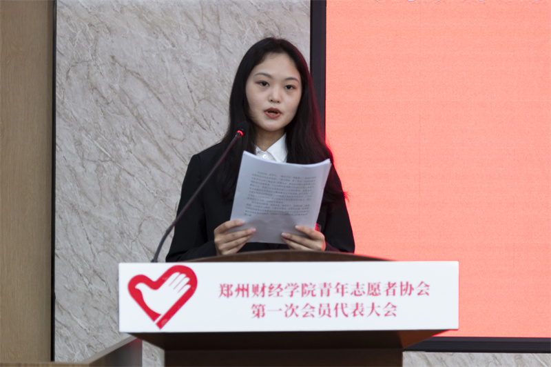 优秀青年志愿者代表张佳琪上台发言,她分别从抗疫志愿工作、红色血脉传承、冬奥志愿服务等方面回顾了过往一年内主要的志愿者服务工作。她表示,身为郑财学子,在接下来的工作中会继续发扬“奉献、有爱、互助、进步”的志愿服务精神,全力做好志愿服务工作,为志愿服务事业的蓬勃发展贡献自己的青春力量。