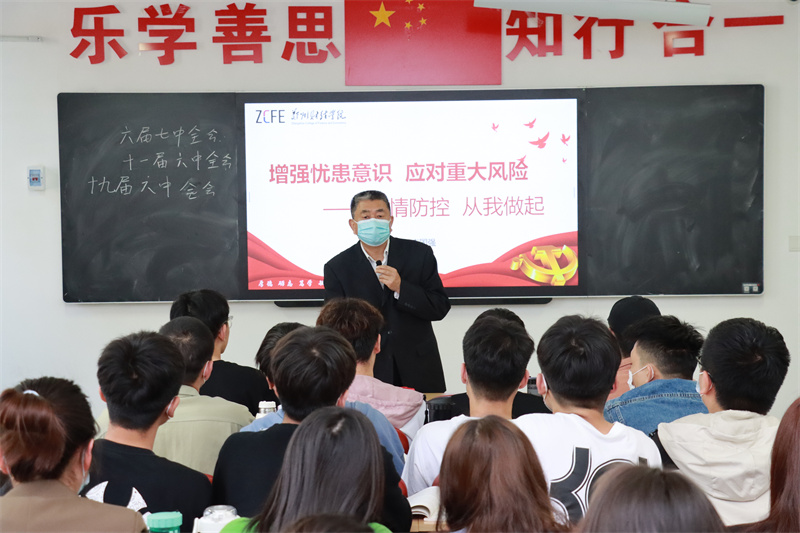 随后,李国强在育爱楼202教室为艺术设计学院学生讲授形势与政策课。他以《增强忧患意识 应对重大风险——疫情防控 从我做起》为主题,围绕当前国内外疫情防控形势、河南省疫情防控相关要求和学校当前疫情防控工作三个方面进行深入讲解。他从全球人类面临的疫情、生态环境等问题为切入点,分析了当前全国人民齐心协力、共同抗击新冠肺炎疫情的现状,彰显出在党的坚强领导下中国战胜疫情的决心——“生命至上,人民至上”。他指出,beat365目前正处于疫情防控关键时期,要坚决坚持贯彻保护好每一位学生的教育理念,并鼓励同学们要严格遵守学校疫情防控相关规定,对自己负责,对他人负责。他强调,当前青年学子正处于“拔节孕穗期”,要努力做好三件事情,一要扣好人生第一颗扣子,树立好坚定的理想信念。二要遵纪守法,遵守校规校纪,扎扎实实学本领,踏踏实实搞建设。三要做好人生规划,提升社会责任感。