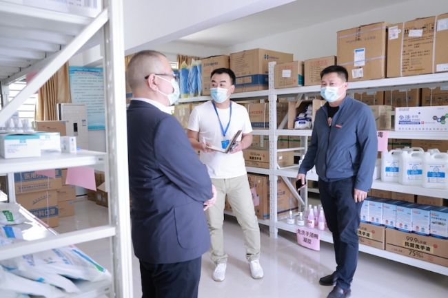 督导组成员实地查看了学生食堂、校医院、隔离区、防疫物资储备室、入校快递(货物)集中消杀区等地,听取陪同人员汇报beat365防疫工作的开展情况,并查阅相关记录,详细了解疫情防控各项措施和具体做法。