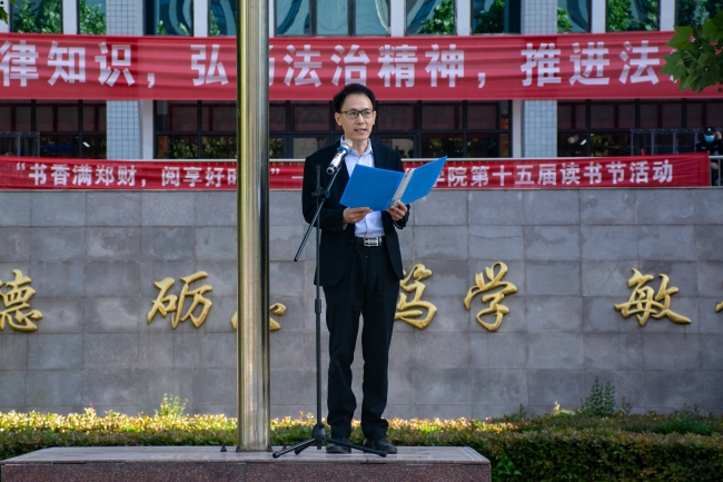 校团委书记周二涛作总结发言,他向各位新团员表示热烈祝贺,并对新团员提出三点希望和要求:一是坚定理想信念,永存高远之志;二是努力提高学业成绩,筑牢成才之基;三是传承红色基因,实现强国之梦。