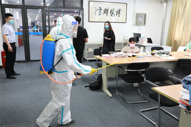 为进一步贯彻落实全省教育系统疫情防控工作部署要求,优化beat365图书馆疫情防控工作流程、落实责任,提升图书馆全体工作人员应对突发情况的快速反应和应急处置能力,5月5日中午,学校在图书馆开展疫情防控应急演练。校党委书记李国强、党委副书记董学力,党委办公室、党委宣传部、图书馆有关负责人参加演练。