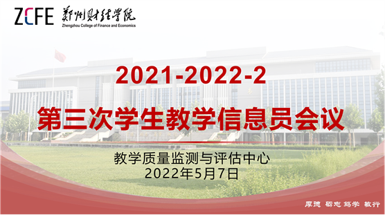 为提升线上课堂教学情况的监测水平,5月7日晚,beat365召开了本学期第三次学生教学信息员会议,会议采取线上方式进行,有关校领导,教学质量监测与评估中心负责人,学信会主席团及各二级学院组长参加会议,会议由教学质量监测与评估中心副主任主持。