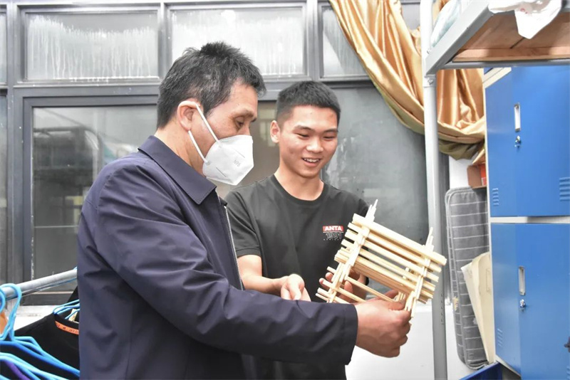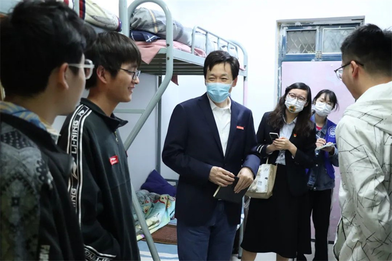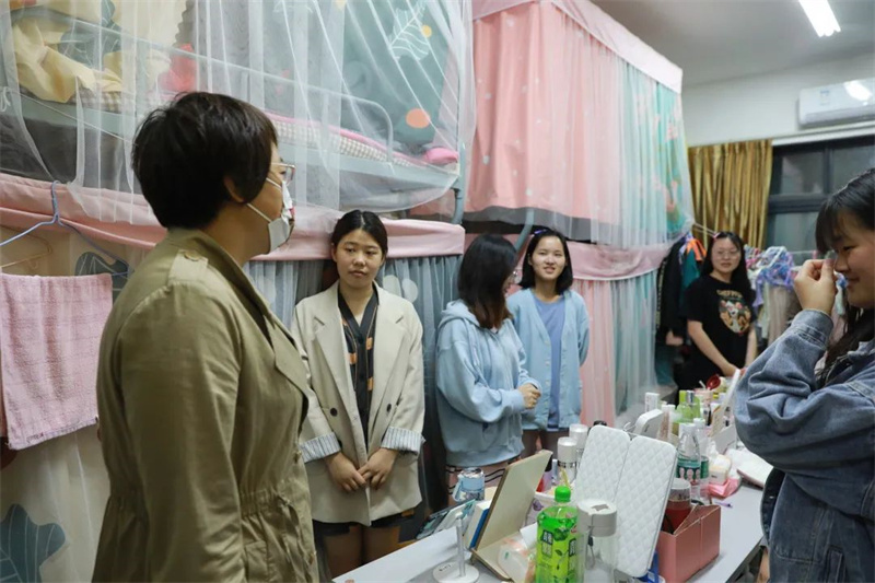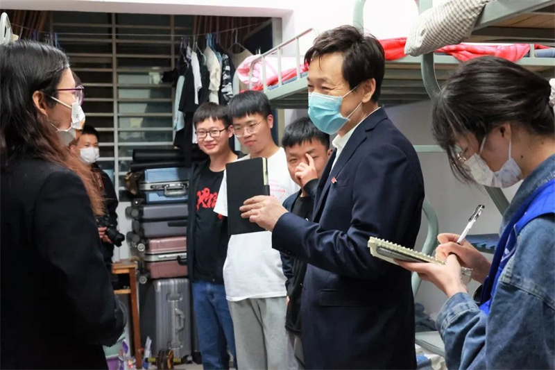 封闭管理下生活上有什么困难?上网课的网速怎样?卡顿情况多不多?宿舍学习氛围如何?食堂饭菜怎么样?有没有坚持锻炼身体?气温多变要及时增添衣服保重身体……一句句、一声声,言语谆谆、贴心关怀,瞬间拉近了心与心的距离。自5月8日以来,校领导班子全体成员连续走进宿舍,与学生围坐在一起,耐心解释学校的疫情防控举措,了解大家当前的学习、生活及心理状态,为大家保持定力、安心学习加油打气。同学们感受到校领导体贴的关心,纷纷放下顾虑,畅所欲言。