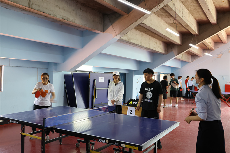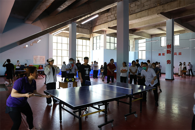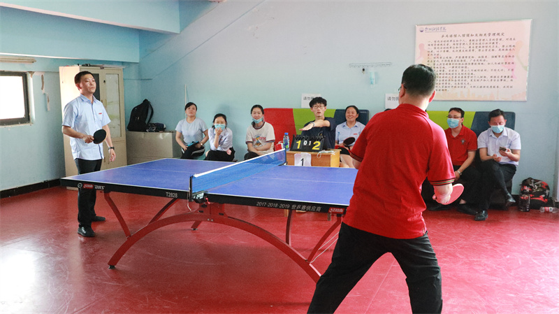 本次比赛为团体赛,第一阶段采用小组循环赛赛制,第二阶段采用淘汰赛赛制,赛制均为三场两胜制。比赛中,运动员们各施绝技,王震宇老师的扣球,陈嘉豪老师的弧线球,李卫军老师的旋转球,柴娜娜老师和李清娟老师的直拍横拍给大家展现了一个个精彩的防守和绝杀。虽然天气炎热,教职工们仍然到场观战助威,现场气氛热烈。