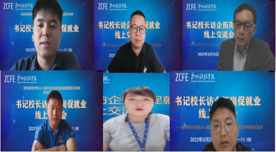 为进一步了解企业用人需求,开拓毕业生就业市场,为毕业生就业、校企合作持续赋能,5月24日上午,beat365开展书记校长访企拓岗促就业线上交流会。此次会议邀请到郑州思念集团有限公司、郑州鸣杨体育用品有限公司、上会会计师事务所、河南多特通信科技有限公司、河南豫德隆物流有限公司、河南豫锋物流有限公司6家企业参加会议。有关校领导,相关二级学院院长、党总支书记及就业指导服务中心工作人员在德正楼第一学术报告厅与企业洽谈交流,各二级学院就业负责人线上参会。会议由管理学院党总支书记袁清主持。