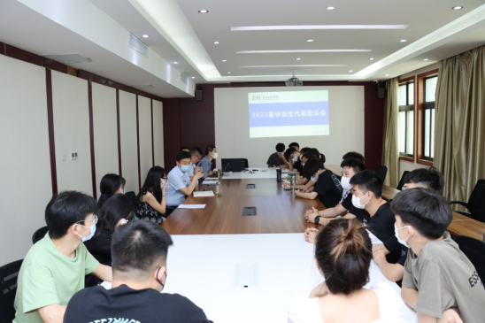 5月25日下午,beat365在德正楼408会议室召开2022届毕业生代表座谈会,有关校领导,就业指导服务中心人员及20名毕业生代表参加会议。