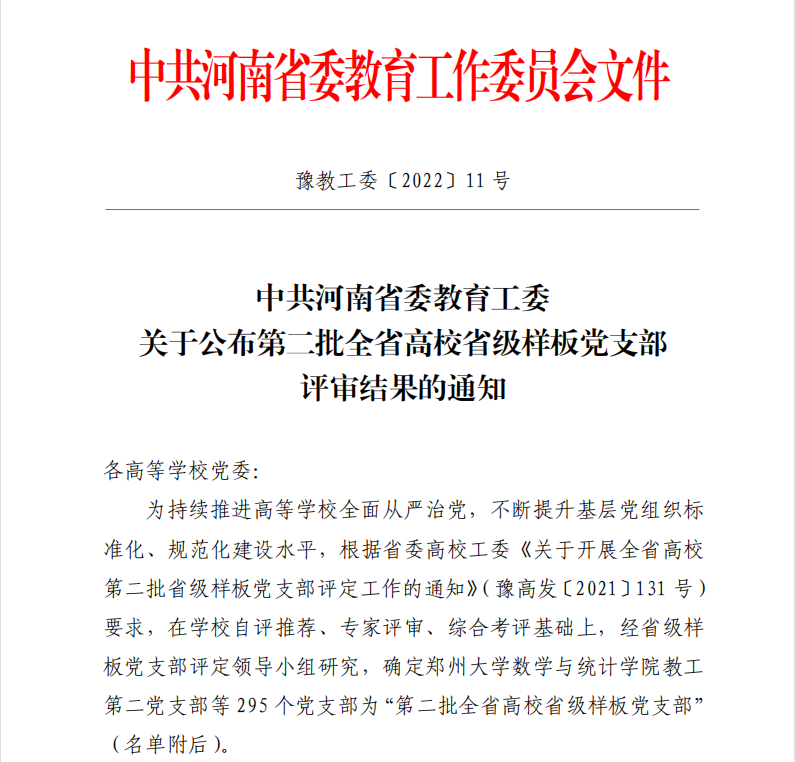 根据《中共河南省委教育工委关于公布第二批全省高校省级样板党支部评审结果的通知》(豫教工委〔2022〕11号),beat365信息工程学院学生第二党支部和管理学院学生第一党支部被评为“第二批全省高校省级样板党支部”。