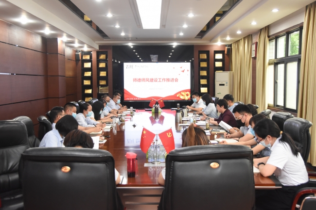 校党委副书记董学力强调,要建强教师党支部,提升教师思想政治水平,使党支部成为涵养师德师风的重要平台。一要建好党员教师队伍,使党员教师成为践行高尚师德师风的中坚力量、师德师范引领标杆,充分发挥党员教师在工作中的模范带头作用。二要将师德规范作为教师入党积极分子培训、教工党支部书记轮训、民主评议党员等活动的重要内容。他要求各党总支书记要在日常工作中创新工作方法,师德教育要融入日常、抓在经常,注意梳理总结师德师风建设方面的主要做法和经验,推深做实师德师风各项专题教育工作。