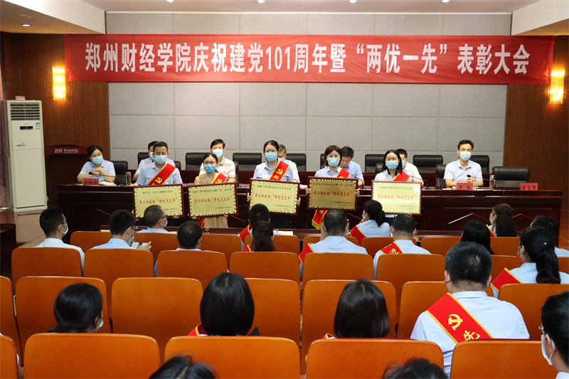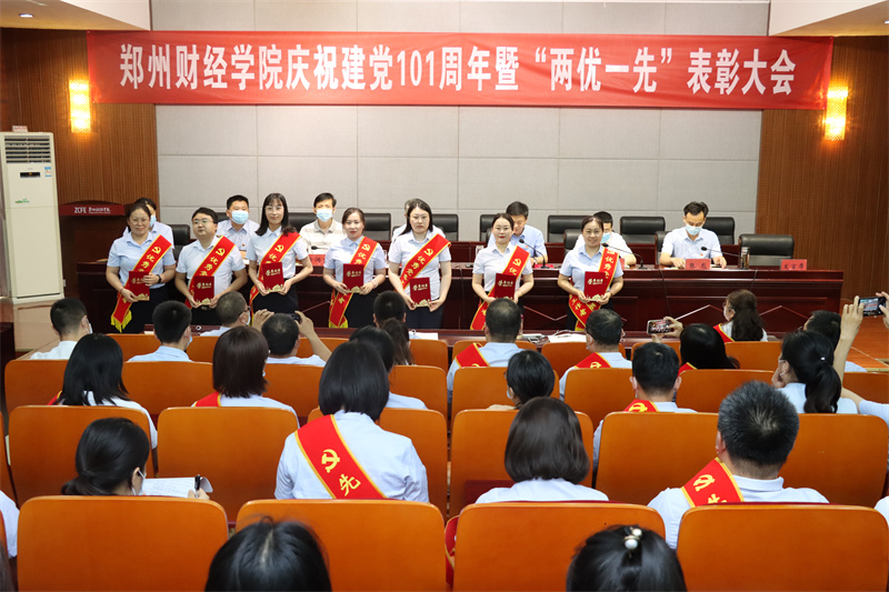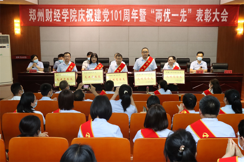 校纪委书记李赞宣读《中共郑州财经学院委员会关于表彰2021-2022学年先进基层党组织、优秀党务工作者和优秀共产党员的决定》《中共beat365官方网站委员会关于表彰2017-2022年党校优秀教师的决定》。
