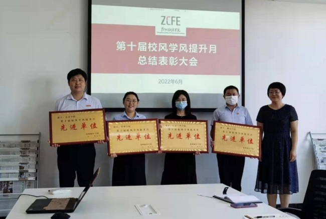 副校长陈静为第十届校风学风提升月活动先进单位颁奖。