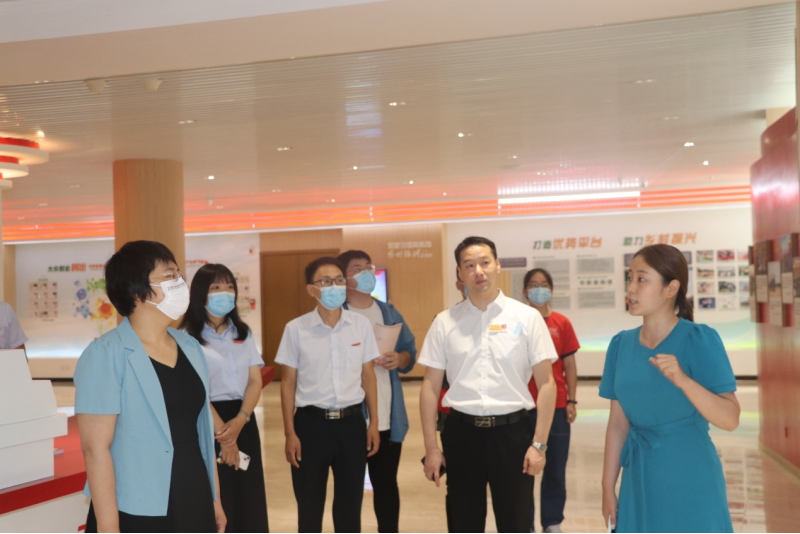 副校长陈静一行及暑期社会实践团成员在工作人员的引导下,深入了解了万邦国际集团党建文化。