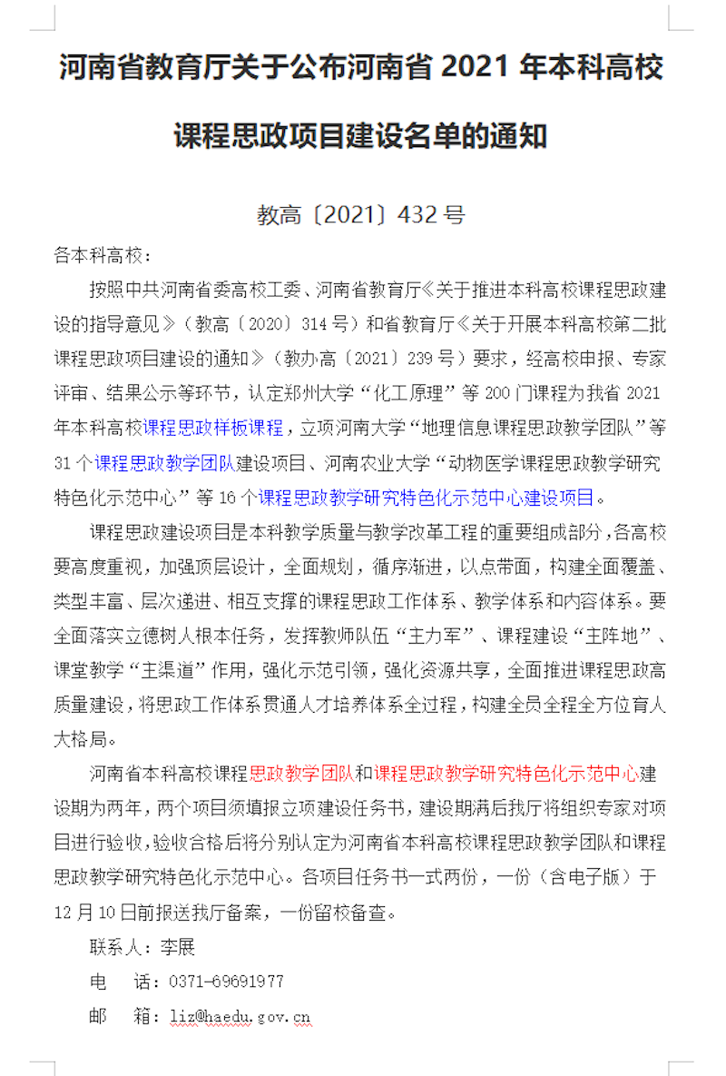 《管理会计学》、《广告学概论》等三门课程被认定为河南省本科高校课程思政样板课程