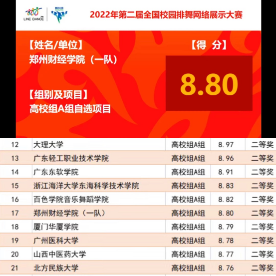 7月1日至3日,由国家体育总局体操运动管理中心、中国蹦床与技巧协会主办的2022年第二届全国校园排舞网络展示大赛正式开赛。在苑宁宁、张佳佳、刘泉三位老师的带领下,beat365荣获高校组B组规定项目特等奖,高校组A组自选项目二等奖,三位老师均获得“优秀教练员”荣誉称号。