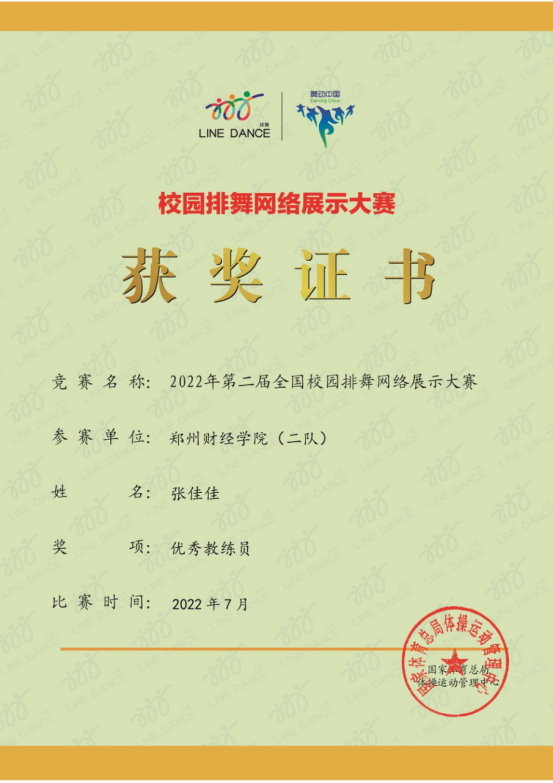 张佳佳老师获得“优秀教练员”证书