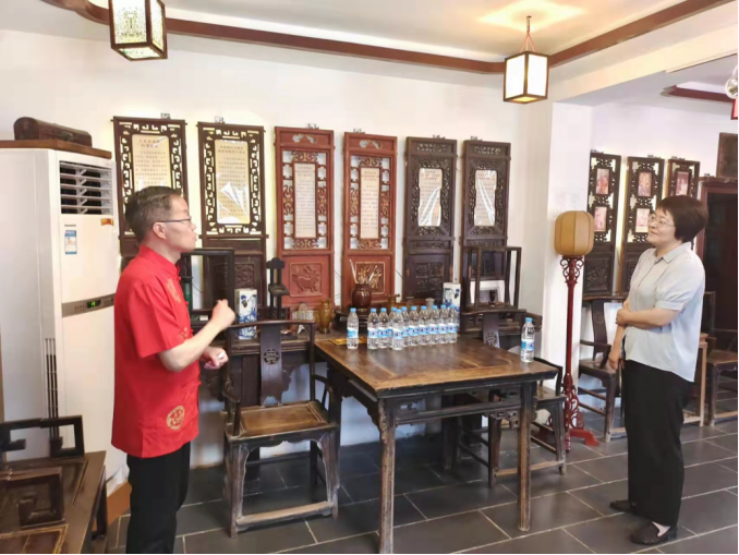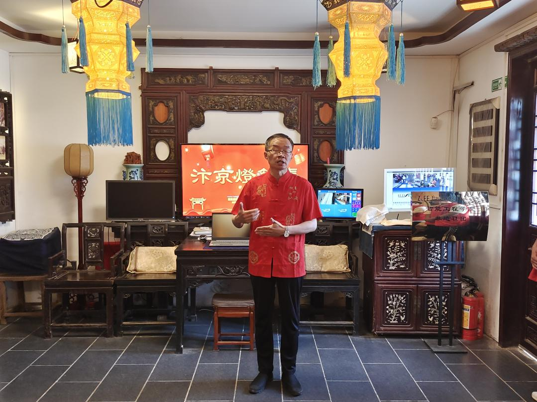 活动伊始,张俊涛老师携汴京灯笼张河南省省级、市级、区级等代表性传承人对陈静一行的到来表示热烈欢迎,并引导大家在馆内进行参观,详细讲解了国家级非物质文化遗产项目汴京灯笼张的传统制作方法及其所蕴含的丰富文化知识。