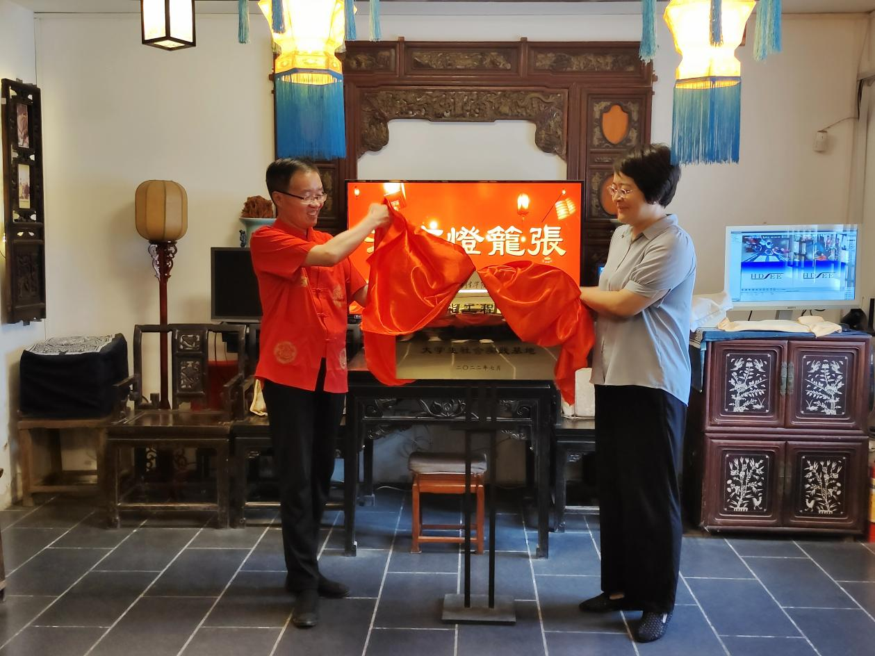 副校长陈静与汴京灯笼张国家级代表性传承人张俊涛老师共同揭牌