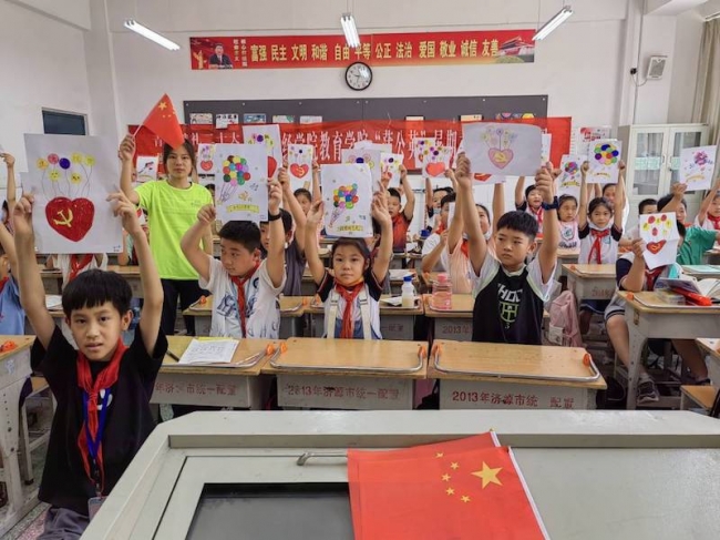青少年正处于世界观、人生观、价值观形成的关键时期,强化党史学习教育对于广大青年坚定信心,跟党走、跟党走具有重要意义。支教期间,支教队员通过开展红色文化参观、党史小课堂、红色观影、红色故事分享会、红色歌曲演唱、庆“七一”手工制作活动、党史黑板报等,结合当地发生的红色故事、走访老党员,引导学生追忆往昔峥嵘岁月,赓续红色血脉,厚植爱国情怀,勇担时代使命。