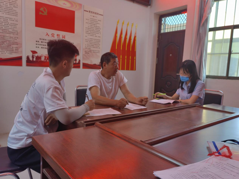 “乡约美丽”暑期社会实践调研团成员与村民代表进行访谈
