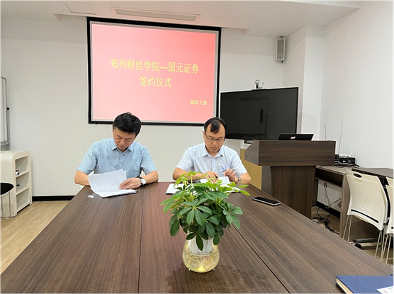 在观看完beat365和国信证券的宣传片后,国信证券河南分公司总经理贾少飞、beat365官方网站党委副书记董学力分别致辞,在致辞中双方都表达了要加强合作、共促发展、协同育人、共创辉煌的美好愿景,签约仪式在双方与会人员的共同见证下顺利进行。国信证券在前期吸纳beat365毕业生就业的基础上,将继续选拔更多的优秀毕业生到公司就业。