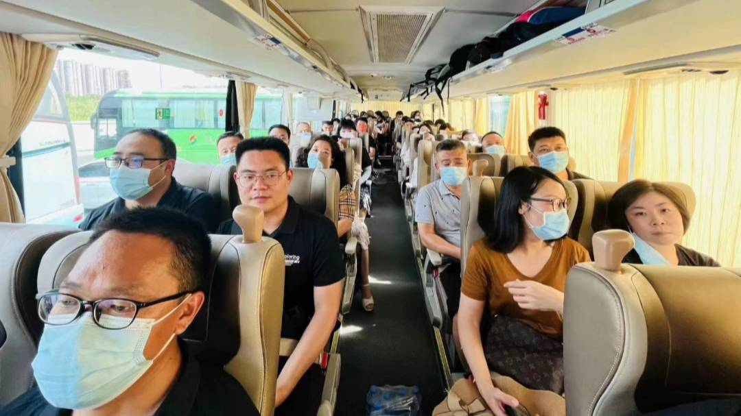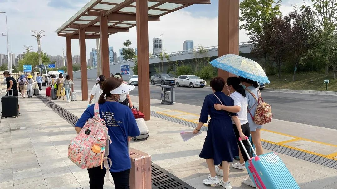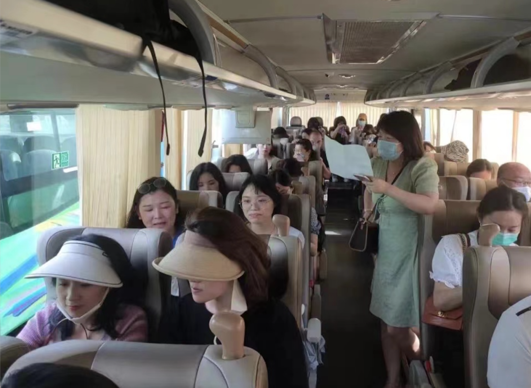 研修班学员集合完毕之后,工作人员耐心地为大家讲解了乘车的相关安排,带领学员们前往大巴车乘车处。