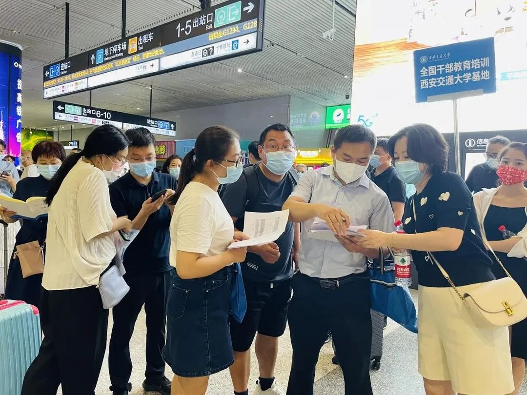 研修班的学员们顺利抵达西安北站。随后在西安交通大学相关工作人员的引导下,前往指定地点汇合。校长王能民等校领导以及接待人员早早等候在车站,欢迎学员们的到来。