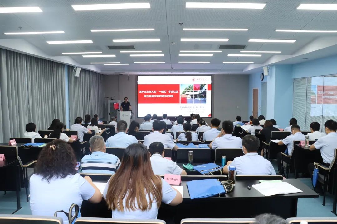 西安交通大学学生处处长周远为学员作《基于三全育人的“一站式”学生社区综合服务改革实践与探索》报告。他从国家政策、教育改革、试点建设等方面切入,详细梳理学生社区综合服务改革的工作背景,提出高校“一站式”学生社区综合服务改革面临诸多机遇与挑战。在深入分析当前学生群体特点的基础上,剖析学生社区综合服务改革的根源。并重点介绍了西安交通大学探索“党建引领、知行兼修、师生共处、因材施教”的“一站式”学生社区综合管理服务的具体做法和经验。