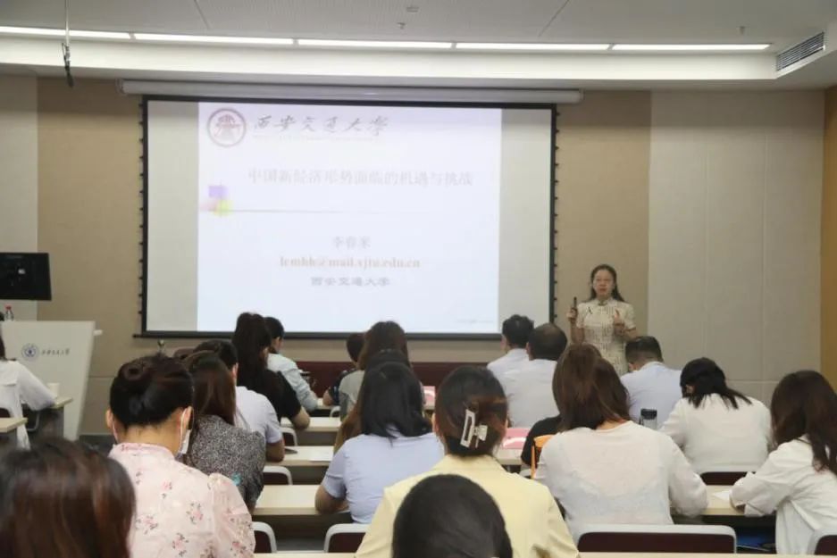 西安交通大学经金学院经济系书记、教授,西安交通大学干部教育培训特聘教授李春米作《中国新经济形势面临的机遇与挑战》报告,她从新经济的内涵、宏观经济指标、指标数据来源等谈起,横向对比了美国、中国、俄罗斯等国家的综合国力、黄金GDP及国际竞争力,纵向比较了影响中国经济增长的主要因素及中国经济面临的主要问题,指出在新冠肺炎疫情反复与结构性调整冲击下,中国宏观经济复苏进程有所放缓,如何在区域经济差异与转型、经济增长压力及优势、国际形势与地缘关系之间寻找到新的平衡依然面临许多挑战。期间,研修班学员就当前国家宏观经济形势与政策问题与李教授进行了深入探讨。