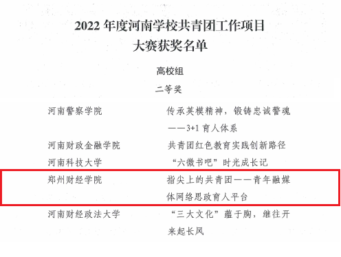 2022年度河南学校共青团工作项目大赛二等奖