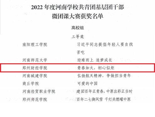 2022年度河南学校共青团工作项目大赛三等奖