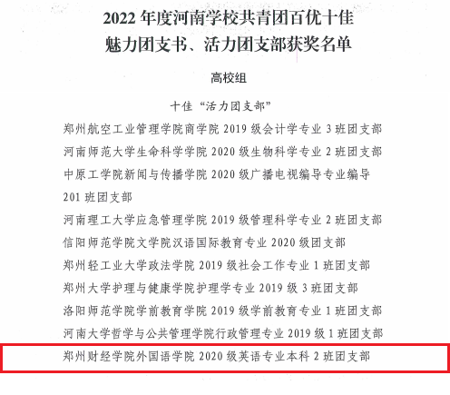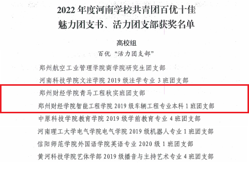 2022年度河南学校共青团十佳“活力团支部”
