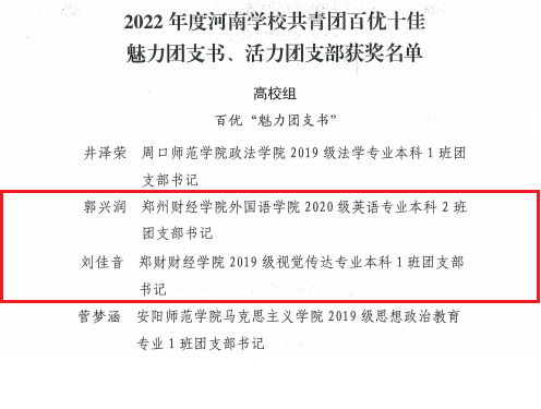 2022年度河南学校共青团百优“魅力团支书”