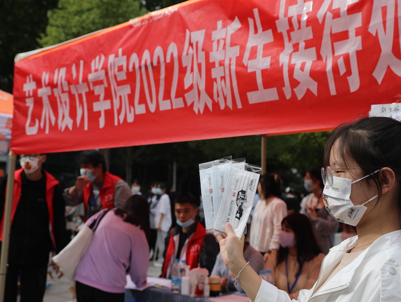 忙碌的报到现场,信息工程学院在为新生发放定制帆布袋。帆布袋整体采用白底红字设计,正面印有“信工青年”四个大字,背面包含校徽、院徽等元素,并印有鲁迅先生的名篇名句。“愿中国青年都摆脱冷气,只是向上走,不必听自暴自弃者流的话……”祝愿各位新生珍惜青春时光,拒绝“躺平”心态,超越自我,书写人生华章。