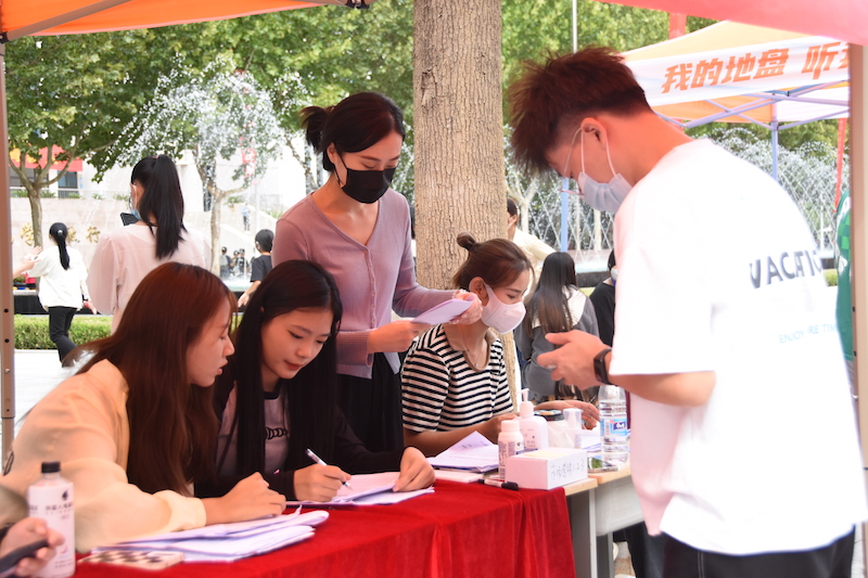 原来,这是学院送给每一位同学的相识礼:“青青子衿 拼出我心”。一块拼图,代表一位学子。“通过拼图环节,让学生一入校门,就感受到文化与传媒学院的温暖,希望能帮助他们找到归属感和对学院的认同感。”文化与传媒学院党总支副书记和文敏介绍到。