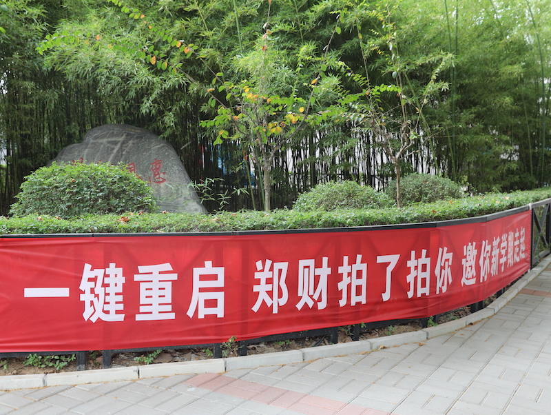 文传学院的迎新现场别出心裁。除此之外,学院还为新生送上其它两份入学礼,一是“见面礼”:“幸会郑财文传——我与校园的第一张合影”,为每一位新生和家长定格下这一美好的遇见。
