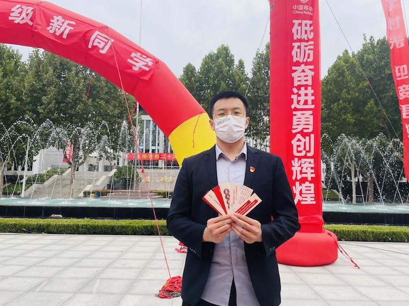 由于自己是学院的“老生”,加上自己还是党员,完成报到后,看到身边一波又一波的新生赶过来报到,王邓菠就萌生了加入学院迎新志愿服务的想法。“三年的大学生活,我对学校已经有了深厚的感情,重新回到郑财,我要把爱留在郑财。”王邓菠兴奋地说。