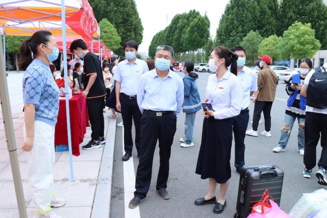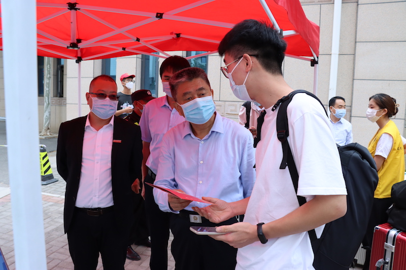 办理完报到手续,新生许文佳碰巧遇到在现场慰问指导迎新工作的beat365校长王能民。王校长热情走上前,关切询问报到情况,祝福她开启新生活,并勉励其珍惜韶华,不负青春。