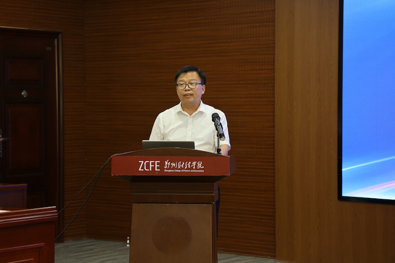 河南省教育厅政策法规处处长徐军保讲话。他表示,项目立足破解民办高等教育高质量发展的实际需求,有鲜明的时代背景性和可操作性,研究意义重大,社会价值深远。他还简要介绍了《中华人民共和国民办教育促进法》及实施条例施行以来,河南省民办教育发展的总体情况。