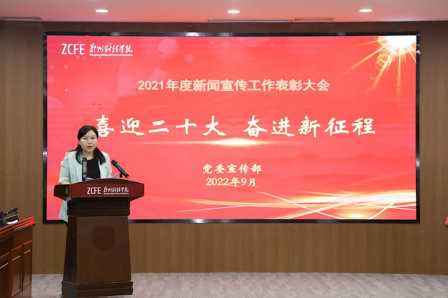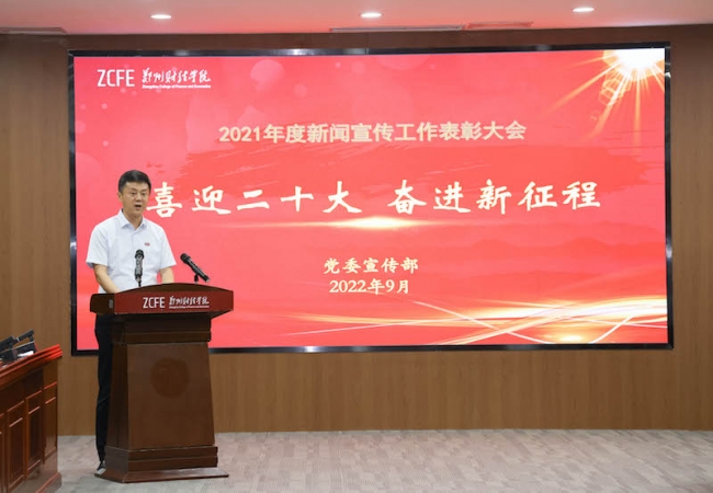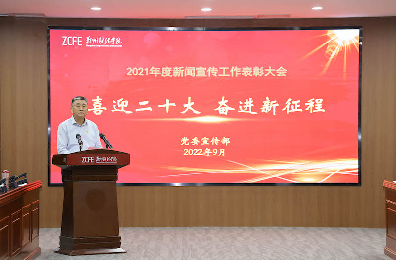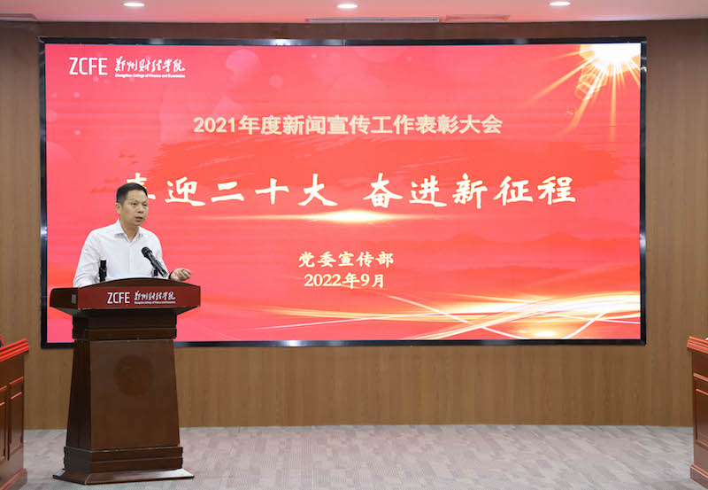 校党委副书记董学力总结回顾了2021年度新闻宣传工作,谋划部署下一阶段工作任务。他从筑牢舆论宣传阵地、完成学校重要活动摄影摄像、对外宣传工作取得新成绩、多篇新闻作品在全省获奖等方面总结了新闻舆论宣传工作,指出要推动校园媒体融合发展,打造全媒体传播矩阵,不断提升新闻发布的时度效和新闻舆论的传播力引导力。针对下一步新闻宣传工作,他指出要推进媒体融合,筑牢宣传舆论阵地,提升学校主流媒体的新闻舆论影响力;围绕中心工作,讲好郑财故事,打造师生喜爱、入脑入心的新闻,让新闻宣传有力度、有温度、有态度;加强外宣工作,完善相关制度,做好全媒体深度报道,引导和鼓励各单位挖掘具有特色的经验典型,展现学校良好形象。