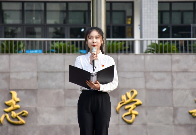 来自会计学院2019级会计本7班的青年团员代表余锐同学进行题为《爱我华夏,耀我青春》的演讲。她表示在今后的学习生活中,会时刻以一名优秀共青团员的标准严格要求自己,不断提升自身的综合能力和道德素养,争做社会主义好青年。