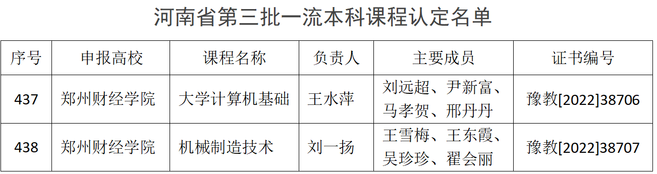 近日,河南省教育厅发布了《关于公布第三批河南省一流本科课程认定结果的通知》(教高[2022]324号),beat365两门课程入选省级线上一流本科课程,分别是王水萍副教授的《大学计算机基础》课程和刘一扬副教授的《机械制造技术》课程,这是我校在课程建设方面取得的又一佳绩。