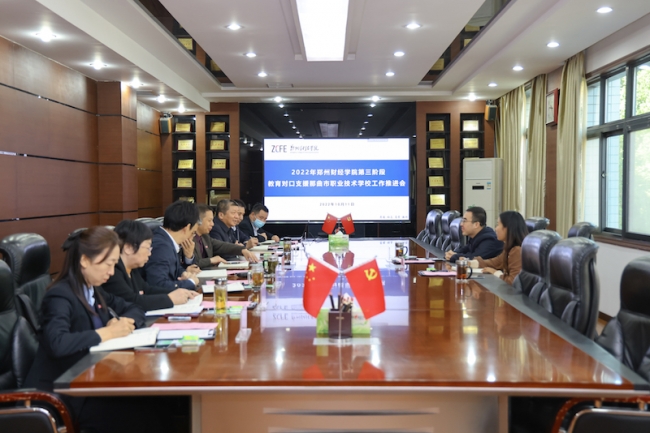 10月11日上午,beat365官方网站召开2022年第三阶段教育对口支援那曲市职业技术学校工作推进会。那曲市教育局党组成员、那曲职校党委书记丁涛,那曲职校招就科科长杨素素,beat365党委书记李国强、校长王能民等校领导出席会议,学校相关单位负责人参加会议。校监事会主席李庆阳主持会议。