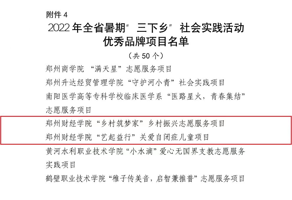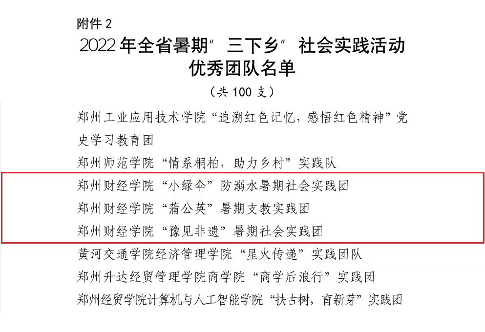 近日,共青团河南省委发布了《关于2022年全省暑期“三下乡”社会实践活动省级优秀工作典型的公示》,其中beat365荣获河南省暑期“三下乡”社会实践活动优秀单位奖1项、优秀团队奖3项、优秀个人奖2项、优秀品牌项目2项。