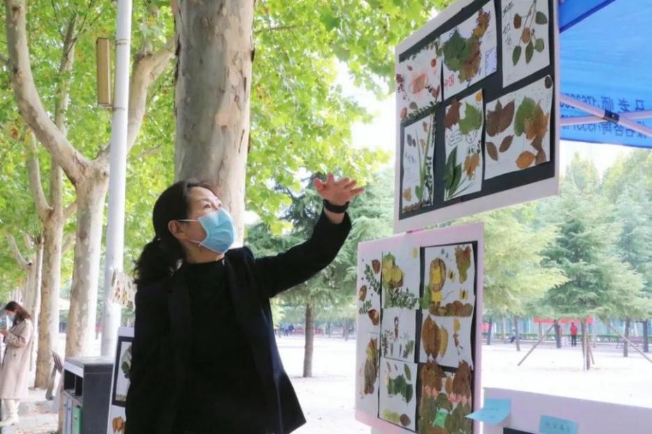 秋风中,一幅幅充满创意的落叶画作随风飘摇,让更多学子感受到秋天的魅力,为秋日着迷。路过的郑财师生纷纷写下一句句秋日寄语,粘贴在他们喜欢的作品下。